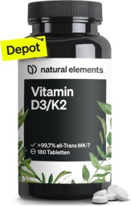 - Potpora zdravlju: Kombinacija vitamina D3 i K2 radi sinergijski – D3 pomaže apsorpciju kalcija, K2 pomaže njegovu usmjerenost u kosti umjesto u meka tkiva.